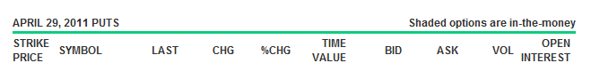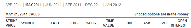 4/26/11 - NICE NICE day of profits booked in and looking like more coming, but I think it will take some market down to keep it coming. These options expire on Friday so time decay will be quick and profits taken fast. If the stock shows strength in pre market I will close this trade out at open and look for another entry with May puts.