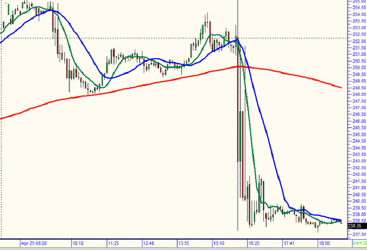 No I am looking to see if yesterdays high will be taken out, but if the stock resumes to the down side, I will short and place my stop at $246.50.