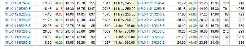 My plays are heavy on the put side with enough calls to pay back the puts purchased should the stock rise to new heights. Speaking of rising, the stock was upgraded by a major brokerage with a price target of $315+. I for one am always suspect when there are upgrades on stocks that have speculated growth.