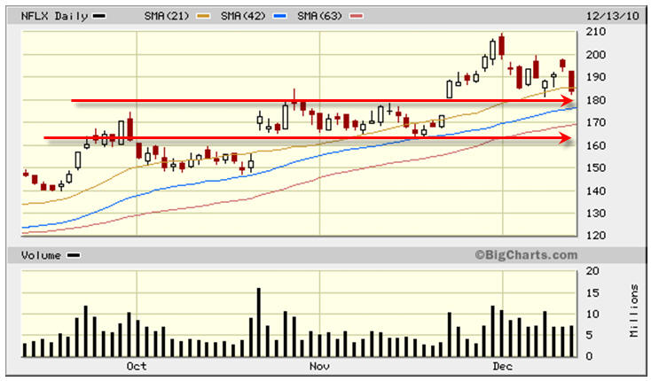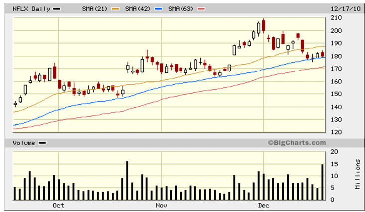 12/29/10 - As we approach the end of the year for 2010, it's looking like NFLX will take down some of the profits and sellers will continue to step in and lock in those profits they have enjoyed for some time now.