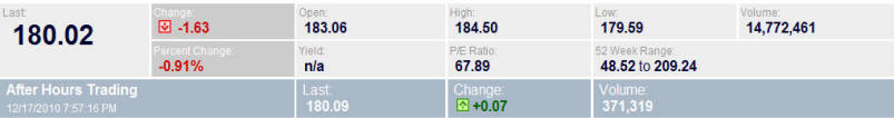 12/14/10 - More selling today and my first target was hit. The 170's are making money and if this selling keeps up, we should see a potential double.