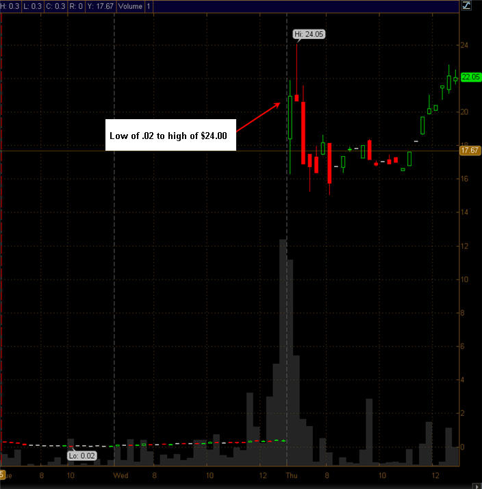 Can you imagine getting in at .02 and selling at $24 today? You could have hit the MEGA LOTTO with $2k