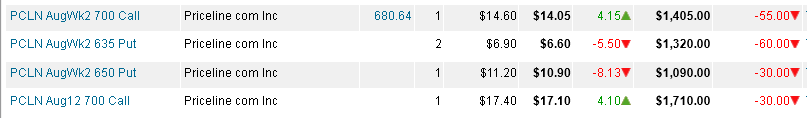 Here is an interesting headline from Forbes: Priceline's Earnings Will Show Global Growth Continues Despite Europe WoesWhenever I see this kind of optimism, I like to overweight the put side of my trades. Of course with a stock like this, you have to do a straddle unless you have the money to risk. I know from past experience with this stock that if they miss, it's going to be a massively profitable ride on the puts!