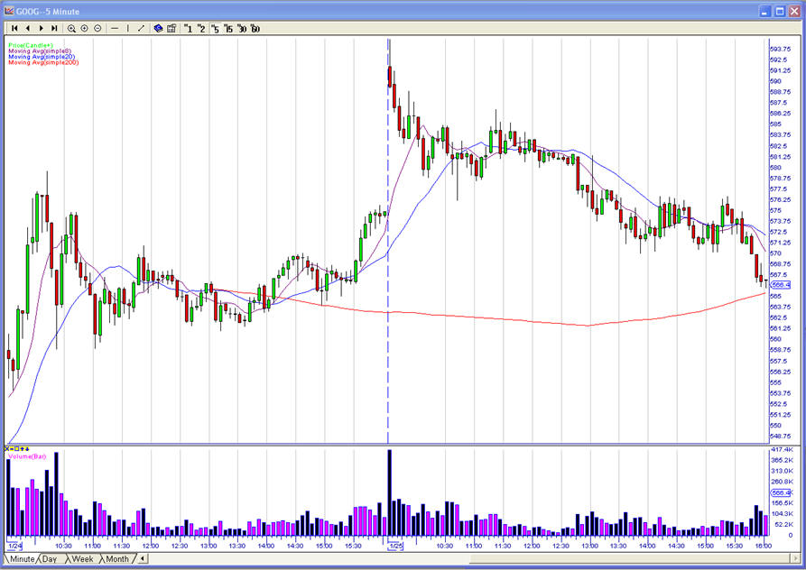 =================================================================================== What a week of volatility we had and what an awesome example of how options can swing wildly on a stock like Google! As you can see, if you were a call buyer last week, you certainly were stopped out by Monday and if you did not have a stop in place, you can see your climb back to a break even is not looking good at this point. With earnings coming next week and the markets coming off a serious gyration, you just might get lucky if Google surprises. Now if you had puts you would be a very happy camper this week! Recent news: