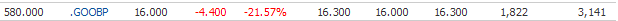 A nice relief rally in the markets lifted Google but it's not going to be enough to even bring the 580 calls back to life.