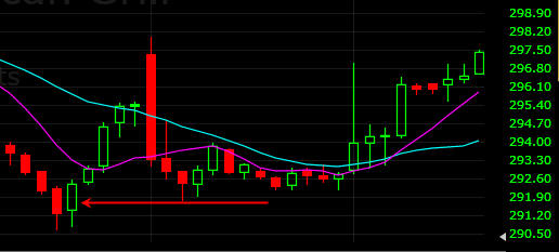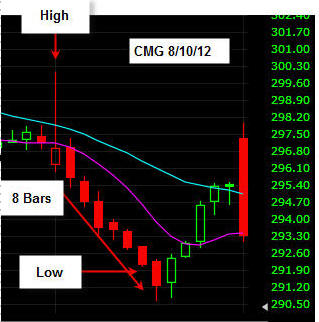 Here is a classic Bull 180 example on CMG with a 30 Minute Chart: