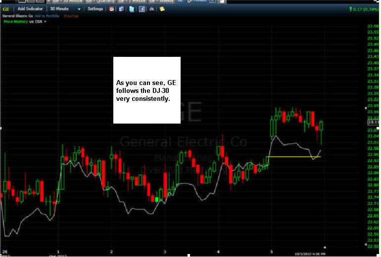 Here is a weeks worth of trading on GE with a comparison graph of the Dow Jones 30: