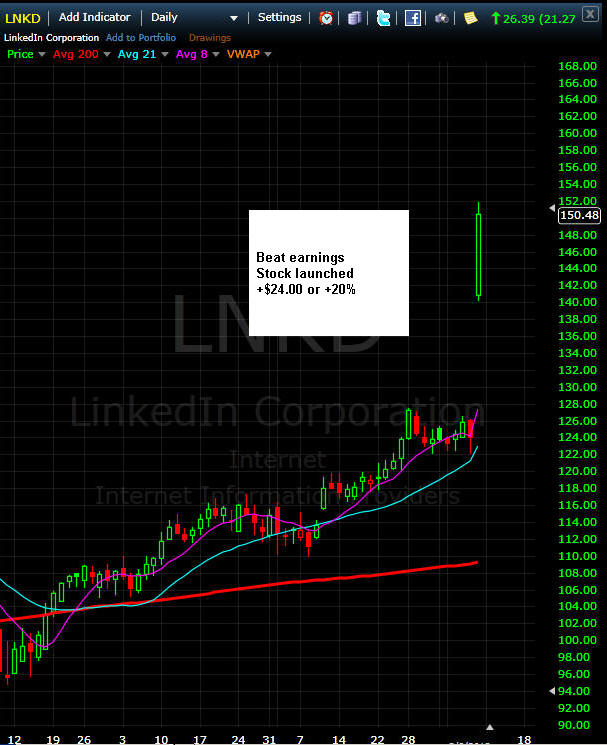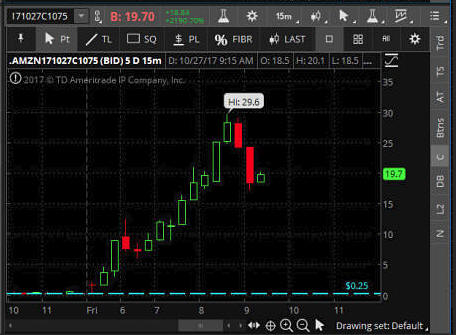 The best way to win the options lottery is NOT trying to pick the plays, because you will eventually use up your trading capital, or worse, get greedy and buy way too many contracts on what you think is a sure deal only to see them expire worthless. The best way to stay in the game and keep fishing is to find a good low priced stock; and then day trade it with share size for quick profits that will pay for your Lotto Trade nets. That way, you are not playing with scared money when most of these plays do not work out. That's right, most of them will expire worthless, so you better have a consistent profit strategy to fund them or a very large account to absorb the losses until the winners come—and they WILL happen often! The winning Lotto Trade will come, and when it does, all the nets that let the fish get away will have zero effect on you because you will be too busy counting the money that White Whale Trade brought you! The best way I have found to make your Lotto Trade Nets is day trading slower moving stocks. Huh? I know, it seems a bit strange to think this way since my website is actually based on options trading, but let me assure you that if you attempt to day trade options without the years of experience it takes to master them, then you are destined to blow up any and all trading accounts you fund—take it from my hard learned experience and DO NOT attempt to day trade options on a regular basis. Ok, so now you may be thinking you will just trade the "fast movers" like: AAPL, CMG, GOOGL, NFLX, FB, BIDU, AMZN, TSLA etc. NO WAY, the key to this strategy is to just go for the stocks that will make you consistent small gains ($0.05 - $0.10 cents) that you can do large share size with—your goal is to capture small consistent moves and make measured gains over and over again. One of my favorite stocks to do this with is GE. This stock has one of the largest market caps on the DOW and it's traded very heavily by fund managers; which means that you could actually trade up to 100k shares and get filled rapidly. This stock also does not move up or down enough to crush your account like the high beta volatile stocks can, so you can be patient and trust it more if things do not necessarily go your way for the day. If you watch GE for a week, you will start to see a consistent pattern of movement which will allow you the opportunity to make the consistent gains you need to build your cash pile for Lotto Trades. Once you get the timing right, you will start to make money hand over fist, and with that said, you can take the profits to start laying your Lotto Trade nets on multiple stocks and catch trades practically every week—and then harpoon the occasional White Whale like this one: