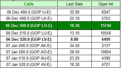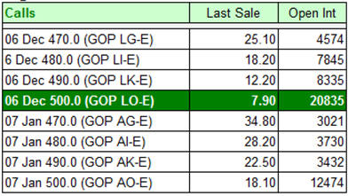 Session 3 – Example 1...short-term options Let’s look at an example of a short-term play. Google has been on a tear lately due to great earnings, future growth, hype by many gurus’ and it’s just a great stock! It's a very expensive stock, so thousands of investors like to play options on this winner and take advantage of the volatility. Here’s an example of prices from the CBOE. GOOG $484.65 Close -4.85 Nov 30, 2006 @ 2:25 ET - Bid 484.65 Ask 484.59