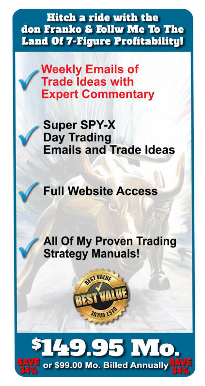 U.S. Government Required Disclaimer - No profitability nor performance claims of any kind are being made on this entire website, email distributions or recorded content. All information provided herein is for educational purposes only and should not be construed as investment advice. Site visitors are advised that trading is a high-risk, speculative activity and that generally expected customer results are that all traders will incur trading losses, regardless of the training they may receive and will not become profitable. You accept all liability resulting from your trading decisions; we assume no responsibilities for your trading results. All sales are final for all products and services sold and no refunds are offered. We are not an investment advisory service, nor a registered investment advisor. No individual advice nor trading management services of any kind are provided, therefore no member nor subscriber should assume that their participation in the services provided herein serves, nor is suitable as, a substitute for ongoing individual personalized investment advice from an investment professional chosen by the member/subscriber. Nothing in our website shall be deemed a solicitation or an offer to buy nor sell stocks, currencies, futures, options or any other instrument. No representation is being made that any account will or is likely to achieve profits or losses similar to those discussed on our site. Also, the past performance of any trading methodology is not necessarily indicative of future results.