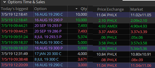 This was the top 10 contract volume on the SPY for 7/5/19: