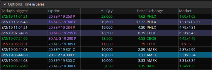 This was the top 10 contract volume on the SPY for 8/2/19: