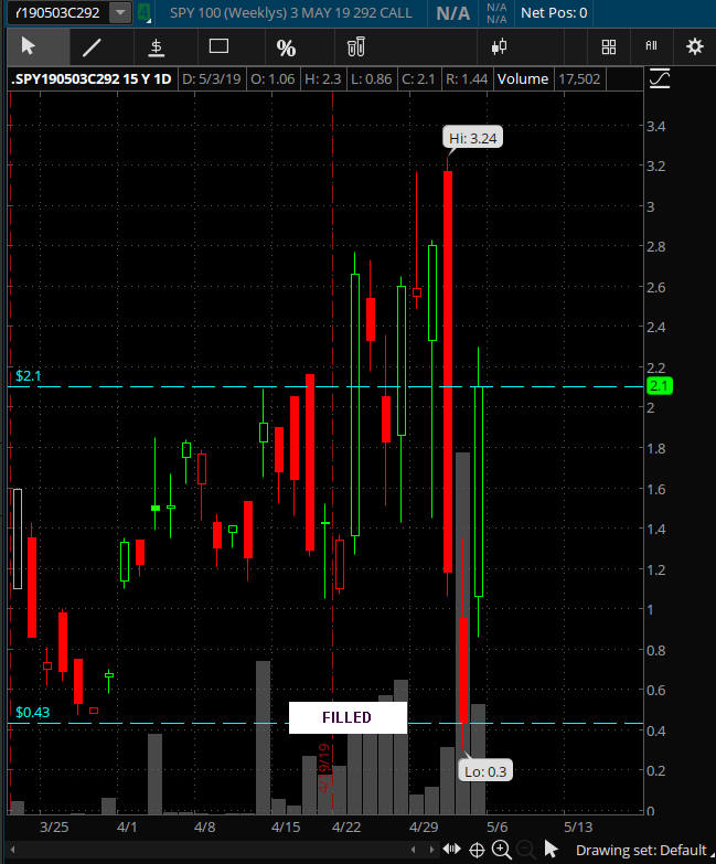 2019 - Week 18 (3rd LIVE Trade) 292 CALLS FILLED Expired on 5/3/19