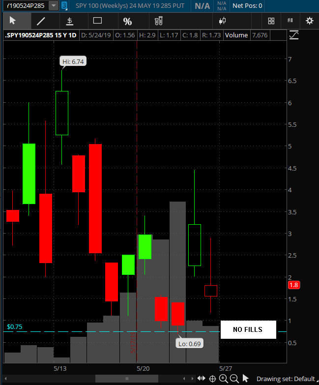 2019 - Week 21 (6th LIVE Trade) 285 PUTS NO FILLS Expired on 5/24/19