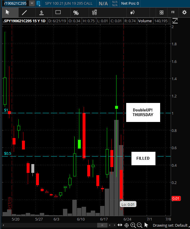 2019 - Week 25 (10th LIVE Trade) 295 CALLS DoubleUP! THUR Expired on 6/21/19