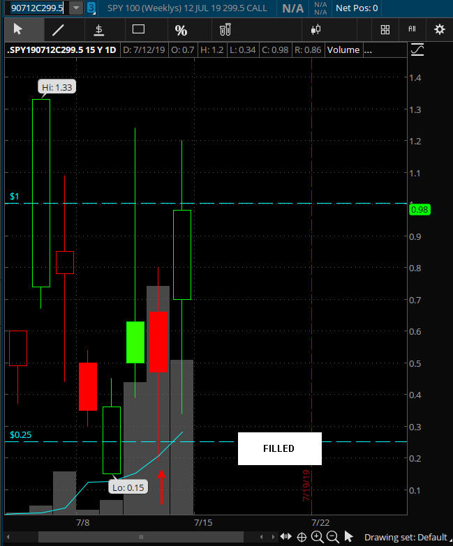 2019 - Week 28 (13th LIVE Trade) 299.50 CALLS FILLED Expired on 7/5/19