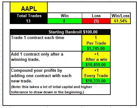 Below are back testing for popular stocks and as you can see, they ALL have solid win ratios and produce amazing results!