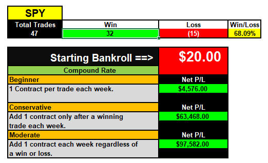 For example, if you started the first week of Jan 2019 trading the SPY (SPDR S&P 500 ETF TRUST) with this strategy, then here are the YTD results as of 8/30/19: