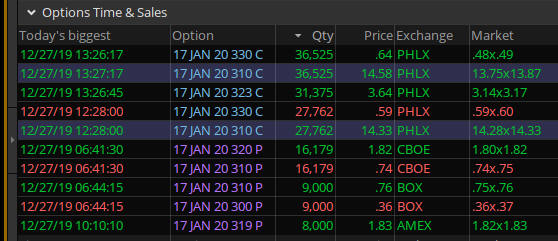 This was the top 10 contract volume on the SPY for 12/27/19: